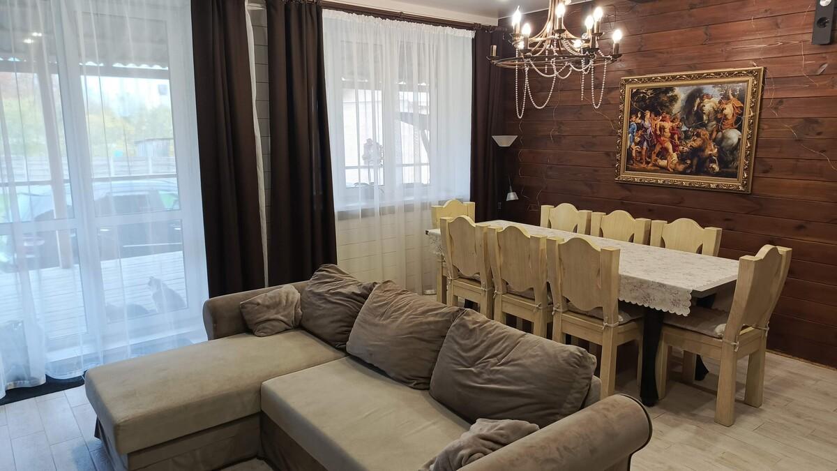 Дом рассчитан на комфортное размещение 6 гостей, с возможностью разместить до 8 человек (с использованием дополнительных спальных мест).