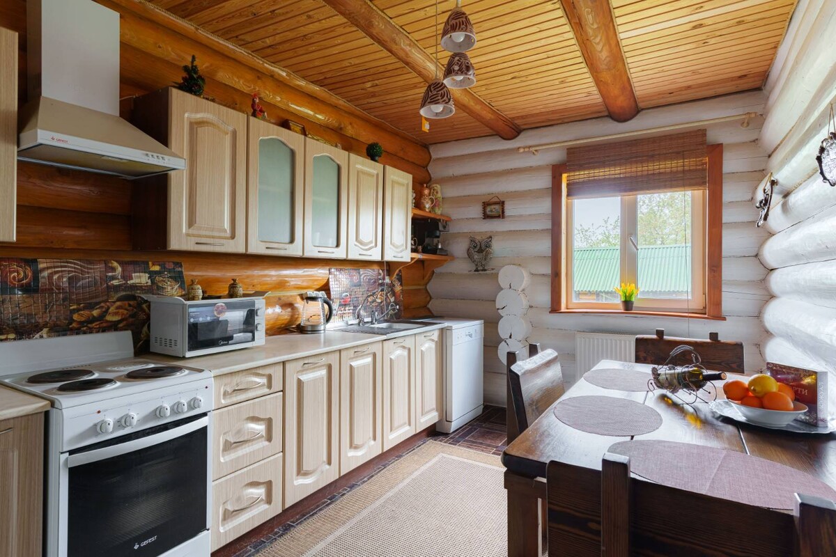 • Интерьер выполнен в теплом стиле кантри с обилием натурального дерева, что дарит ощущение уюта и единения с природой.