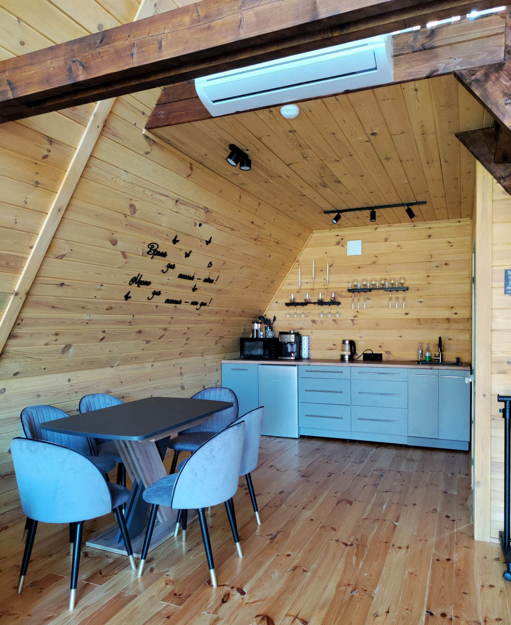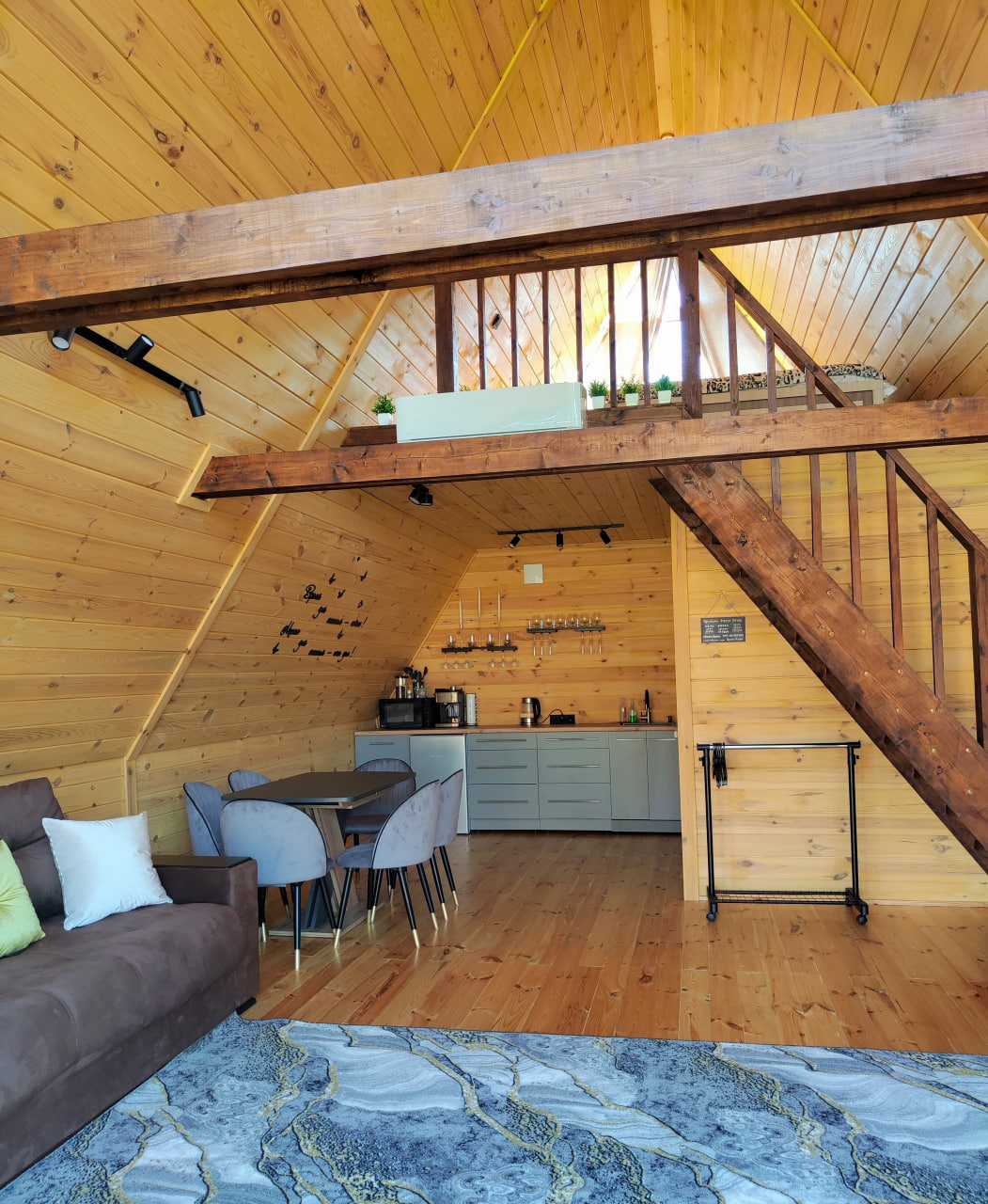 А-фрейм дом рассчитан на комфортное размещение до 6 человек. Это идеальный вариант для семьи или компании друзей, желающих провести время вместе.