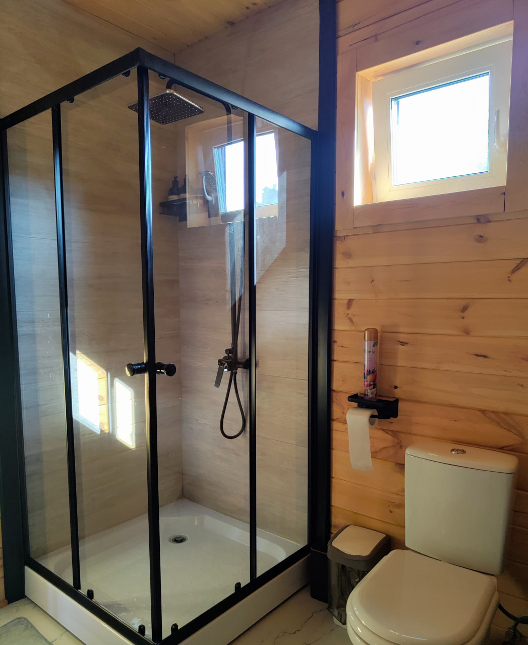 • Уютная ванная комната с современной душевой кабиной.