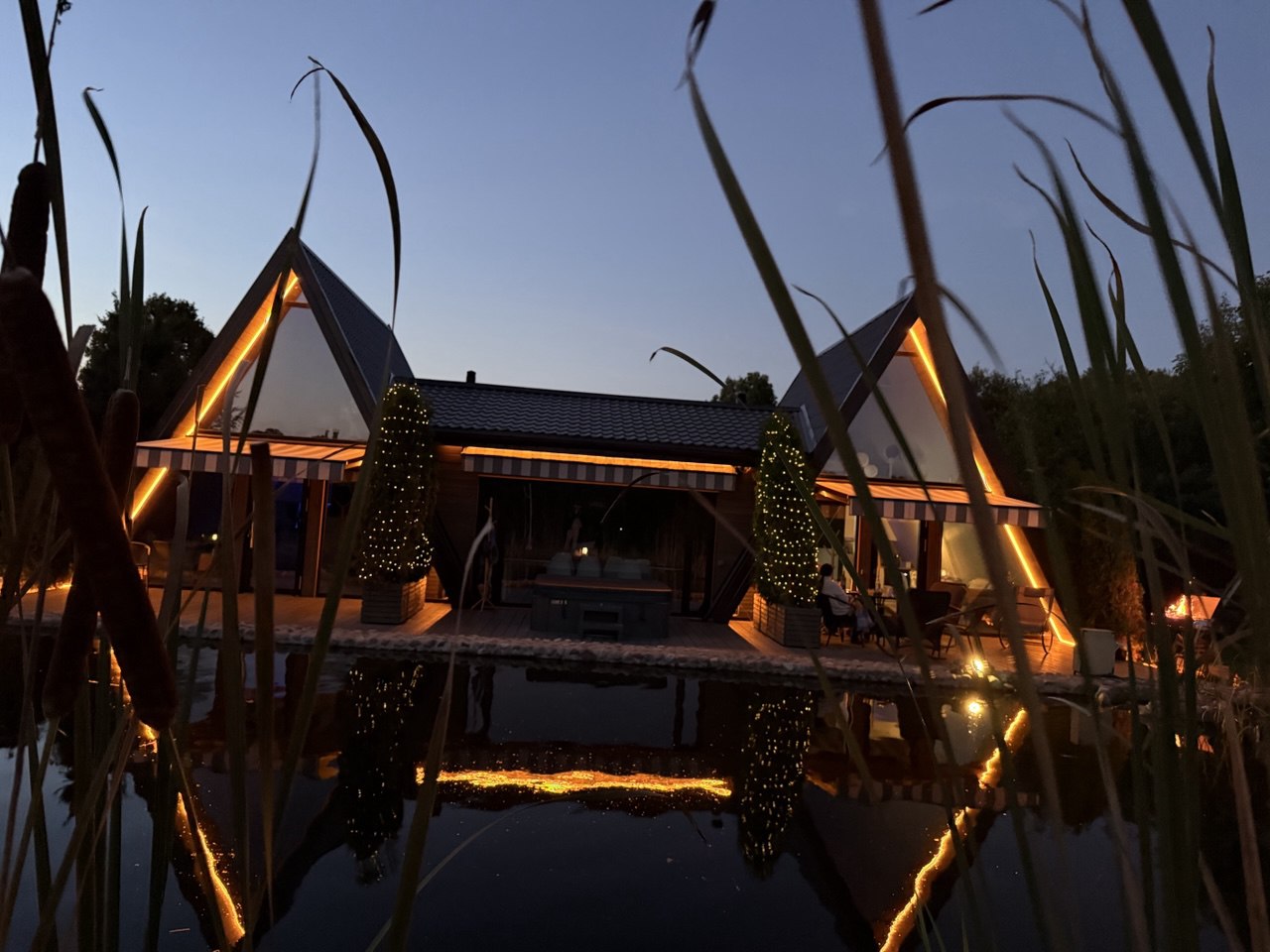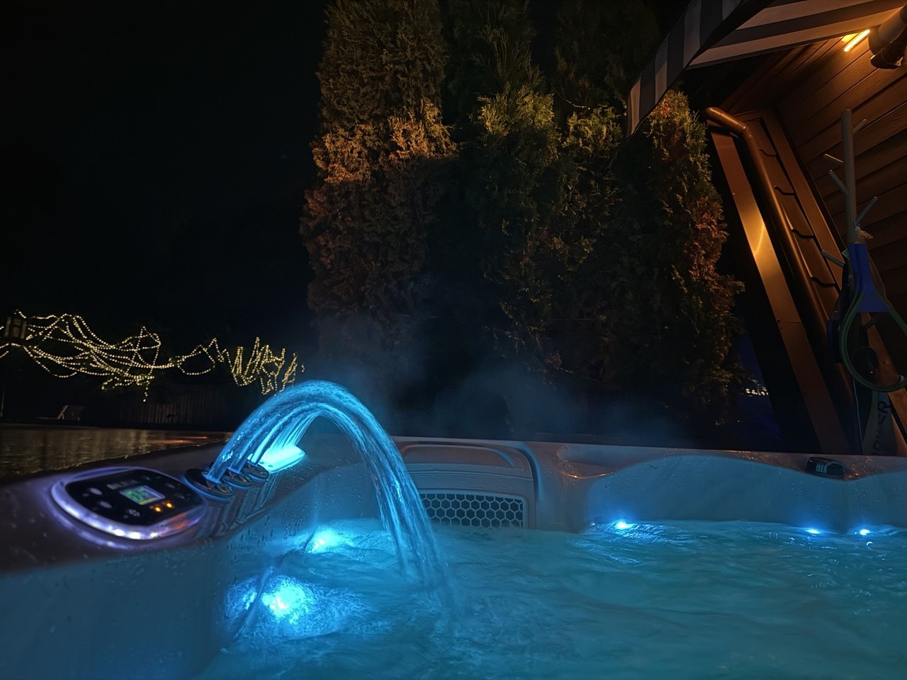 • Роскошный отдых у воды: Погрузитесь в теплую джакузи (+38°C) в любое время года и наслаждайтесь видом на пруд и звездным небом.