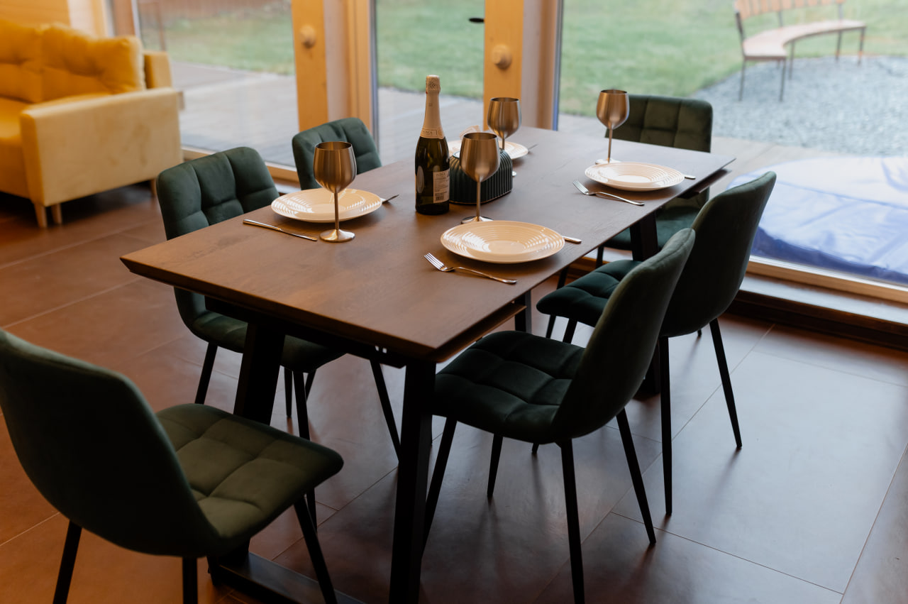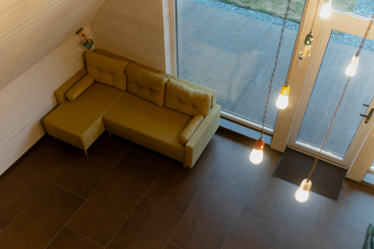 Ключевая особенность нашего дома — двухсветная гостиная. Высокие потолки и панорамные окна наполняют пространство воздухом и светом, создавая редкое для загородного жилья ощущение свободы и парения. Это идеальный дом для романтического отдыха вдвоем или семейного отдыха.
