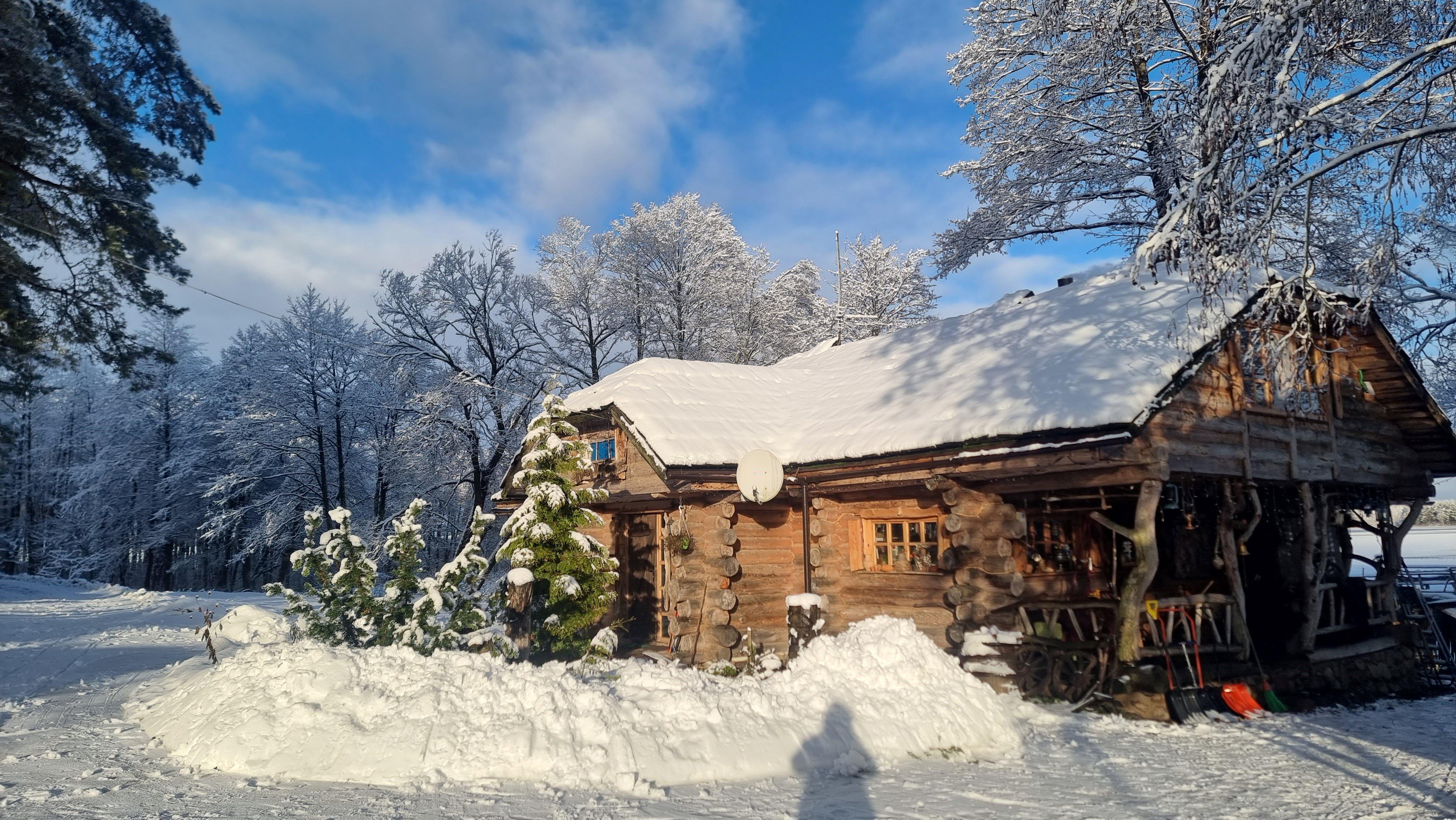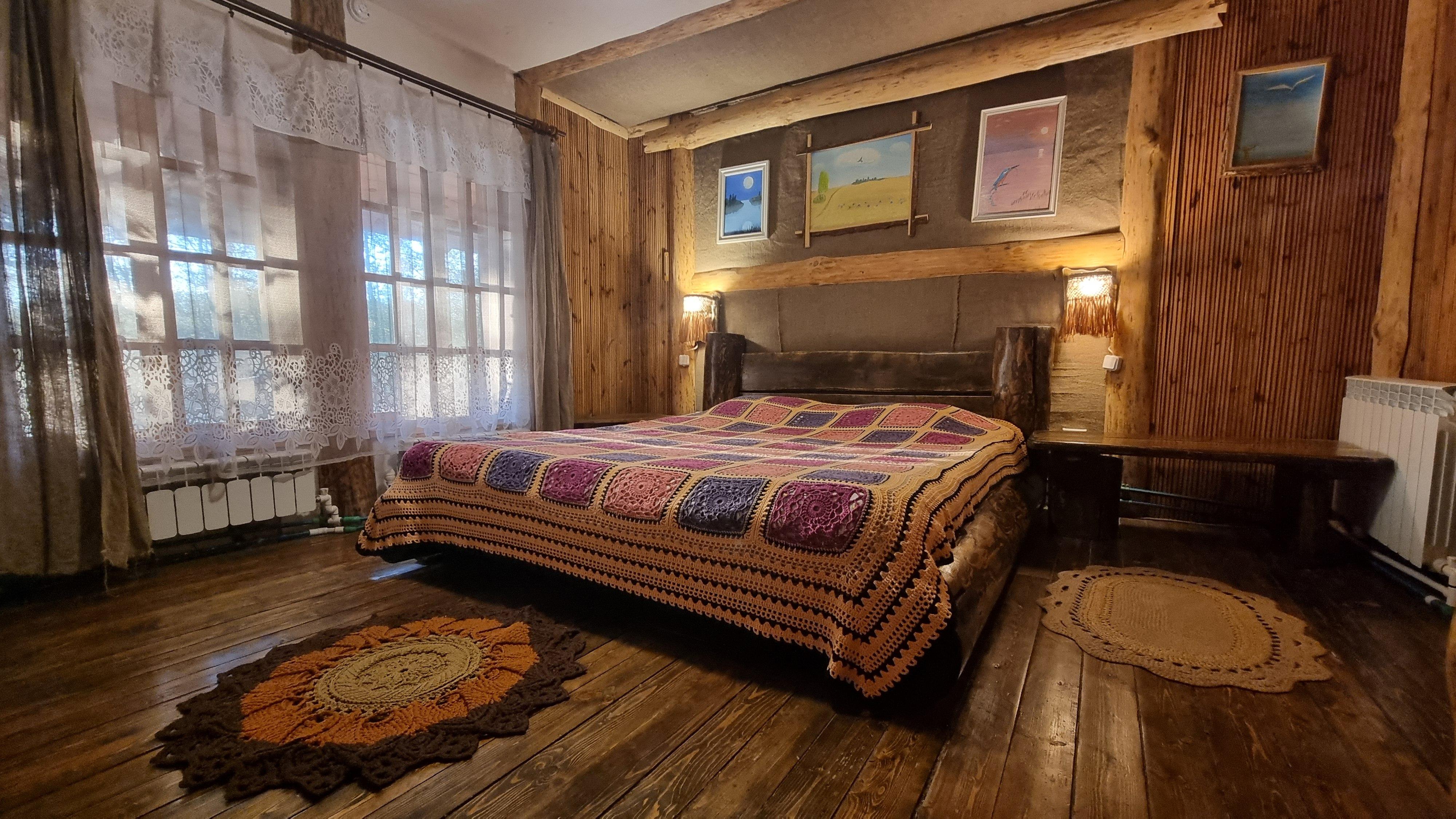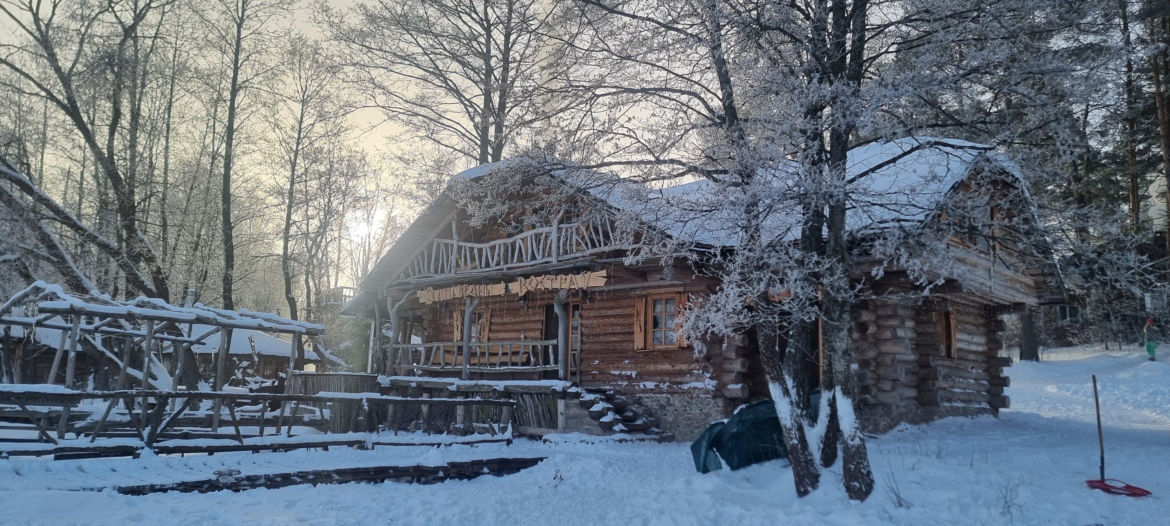 2. «Грыбнікова хата» (до 4 гостей). Отдельно стоящий бревенчатый дом с мансардой, печью-камином и уютным крыльцом. Идеален для семьи или дружной компании.