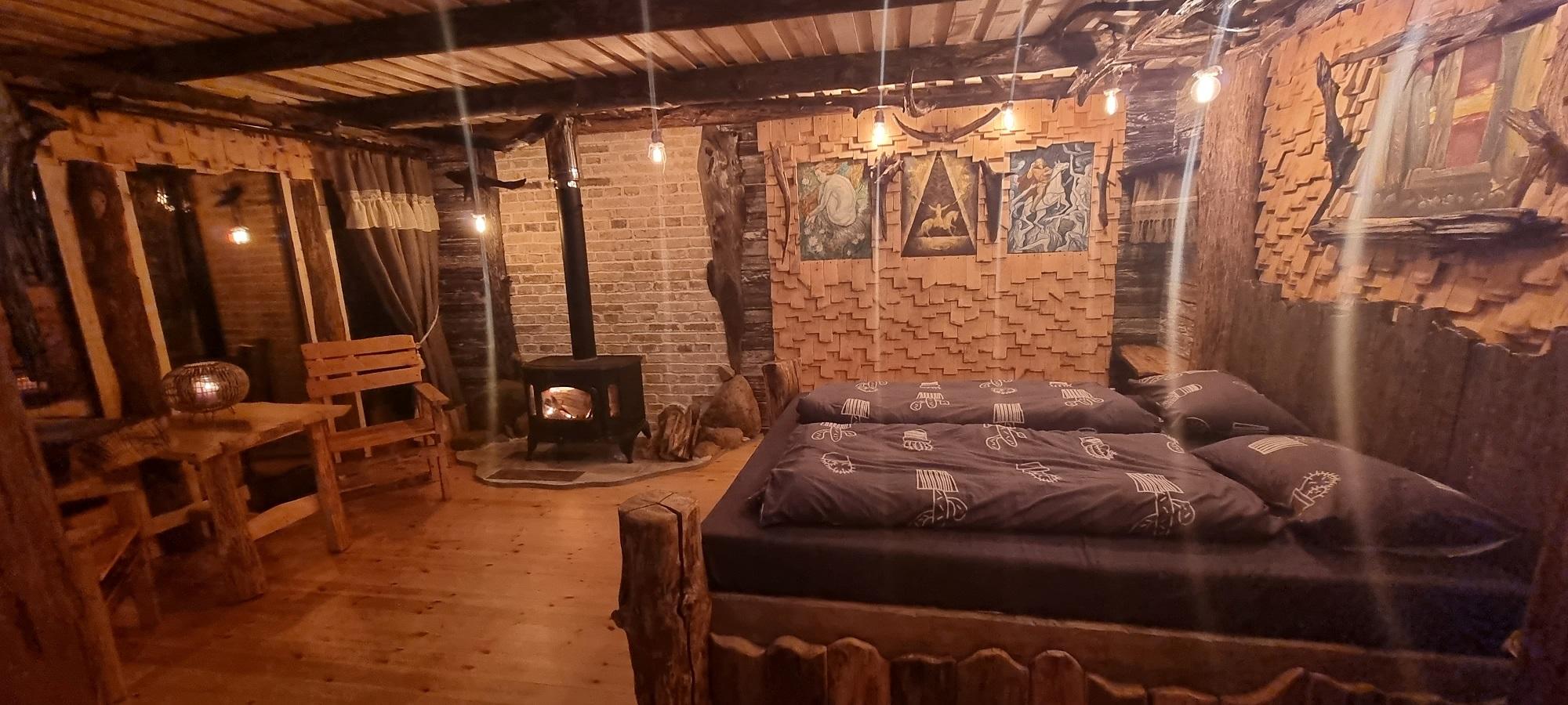 8. «Дом Цмока» (летний домик для двоих). Отдельно стоящее двухместное бунгало с камином и живописным видом на озеро Ивесь.