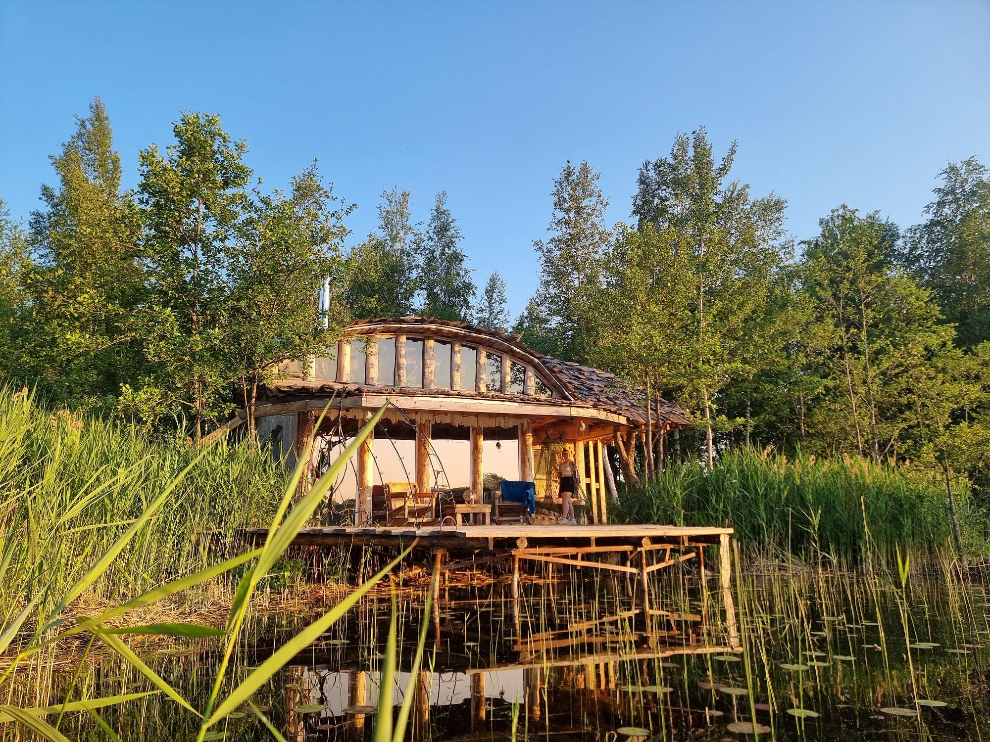 5. «Дом Фамы» (до 4 гостей). Отдельное бунгало с видом на озеро Озерко, собственный пирс и терраса с качелями. Дом с историей, украшенный картинами художника Фомы Воронецкого.