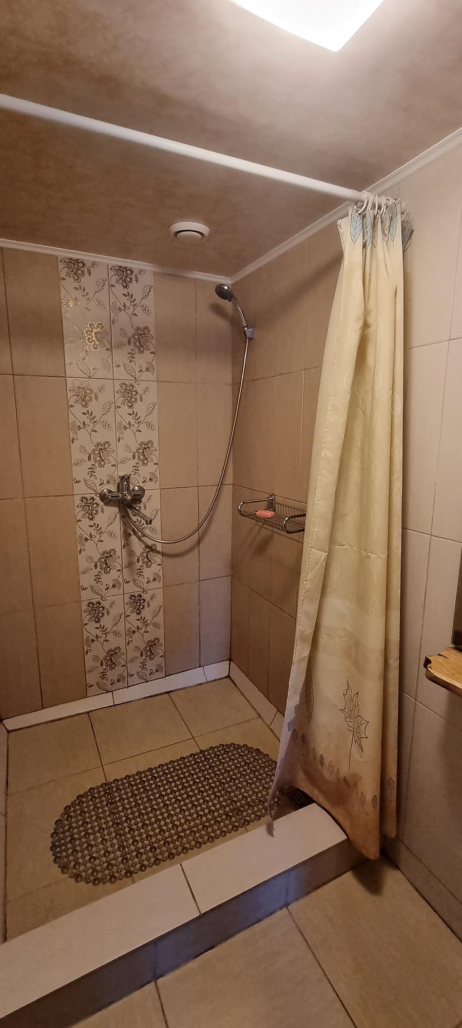 • Просторная гостиная: Большой самодельный диван, журнальный столик и телевизор для совместного досуга.