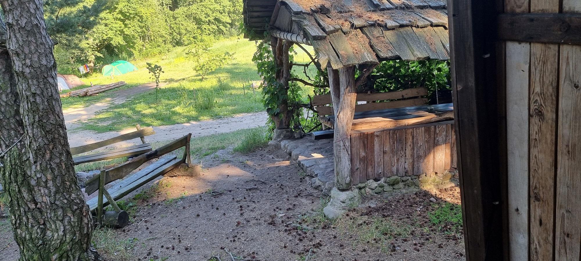 • Своя территория для отдыха: Большая крытая беседка с местом для костра (мангалом) — центр вечерних посиделок с видом на озеро Ивесь.
