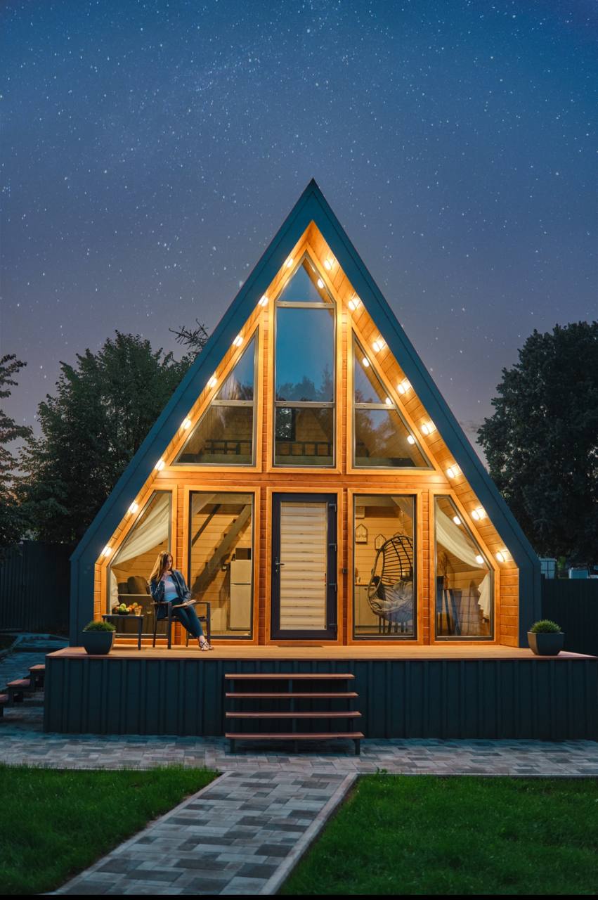 4. Уникальный дизайн: фотогеничный А-фрейм домик с панорамным видом подарит особые эмоции и воспоминания.