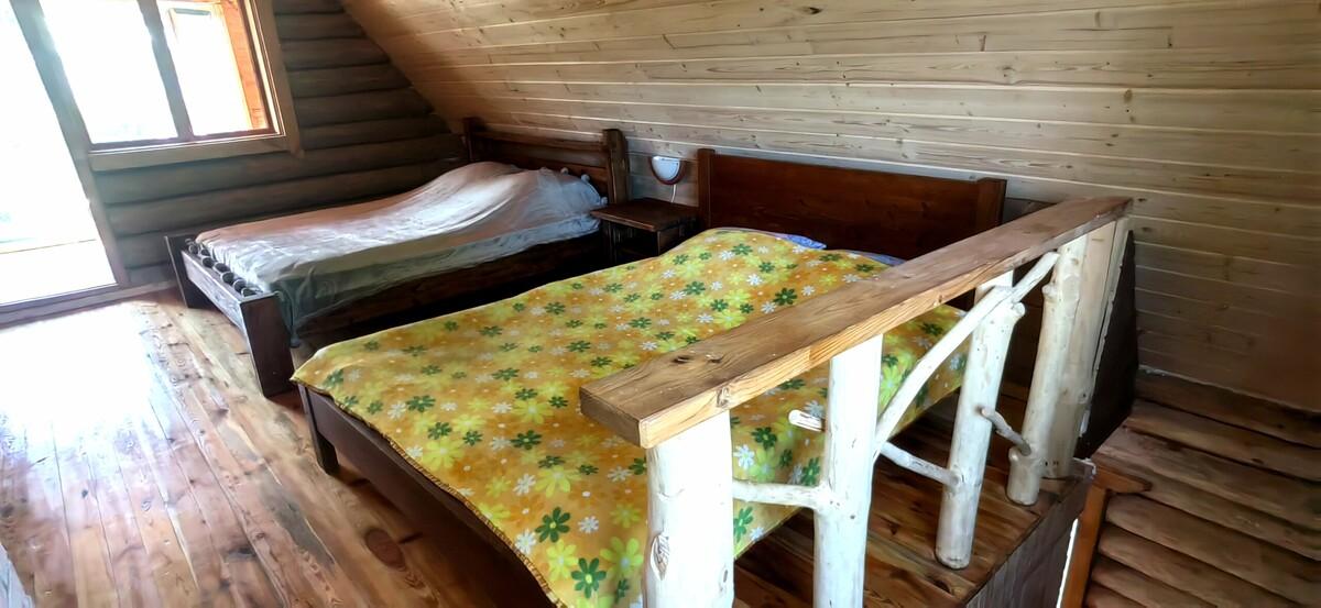 • Спальня на втором этаже с четырьмя кроватями, балконом и москитными сетками.