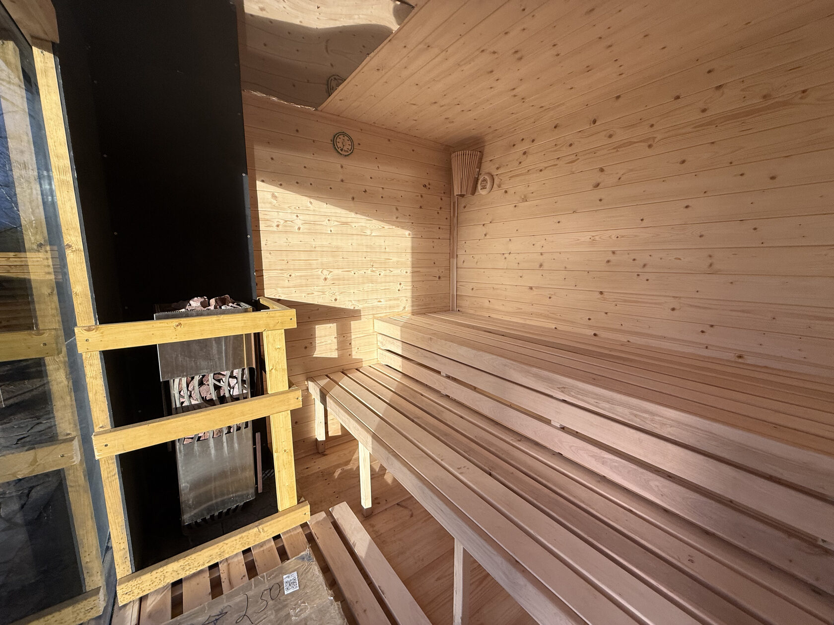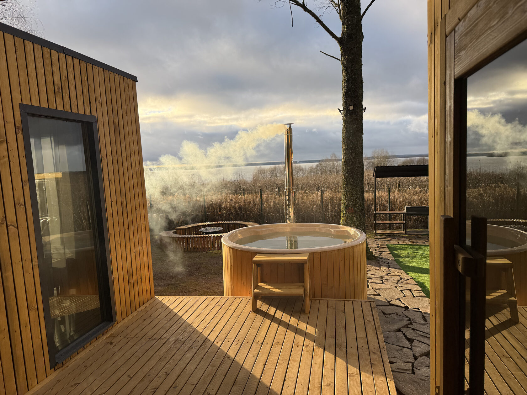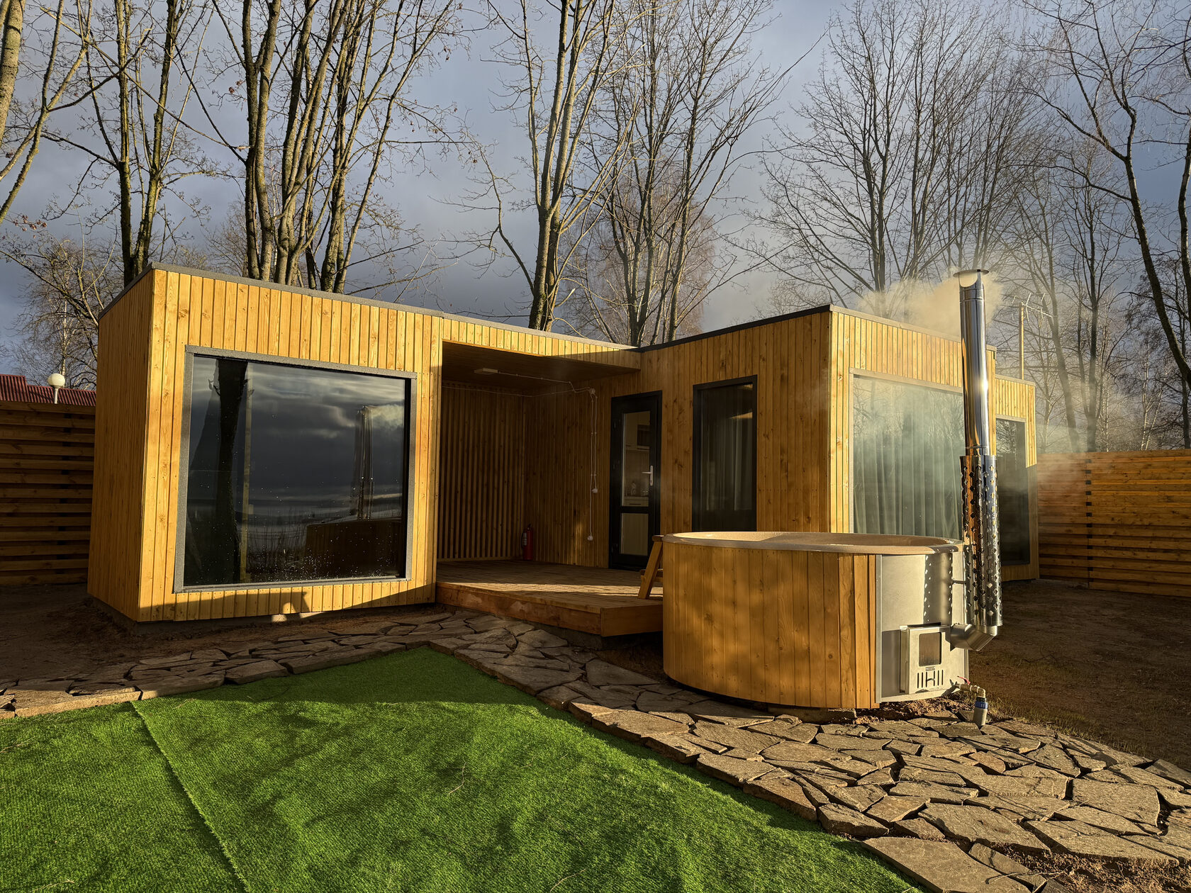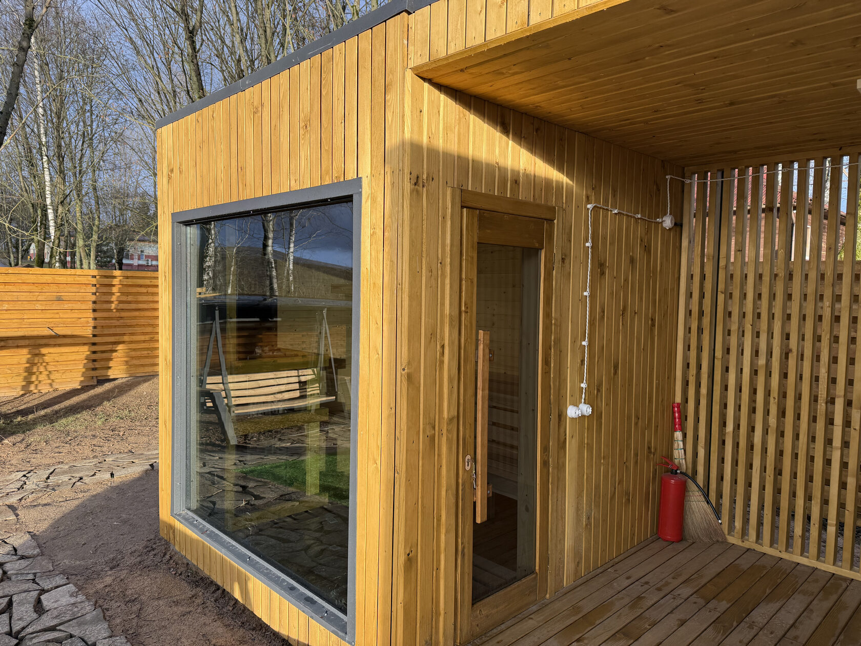 - Сауна с панорамными окнами – вид на Минское море во время парения