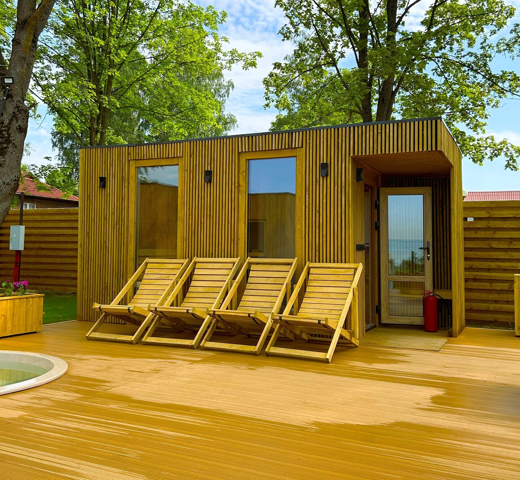 - Зона отдыха – лаунж с удобной мебелью на свежем воздухе