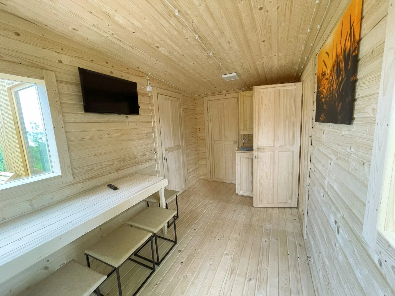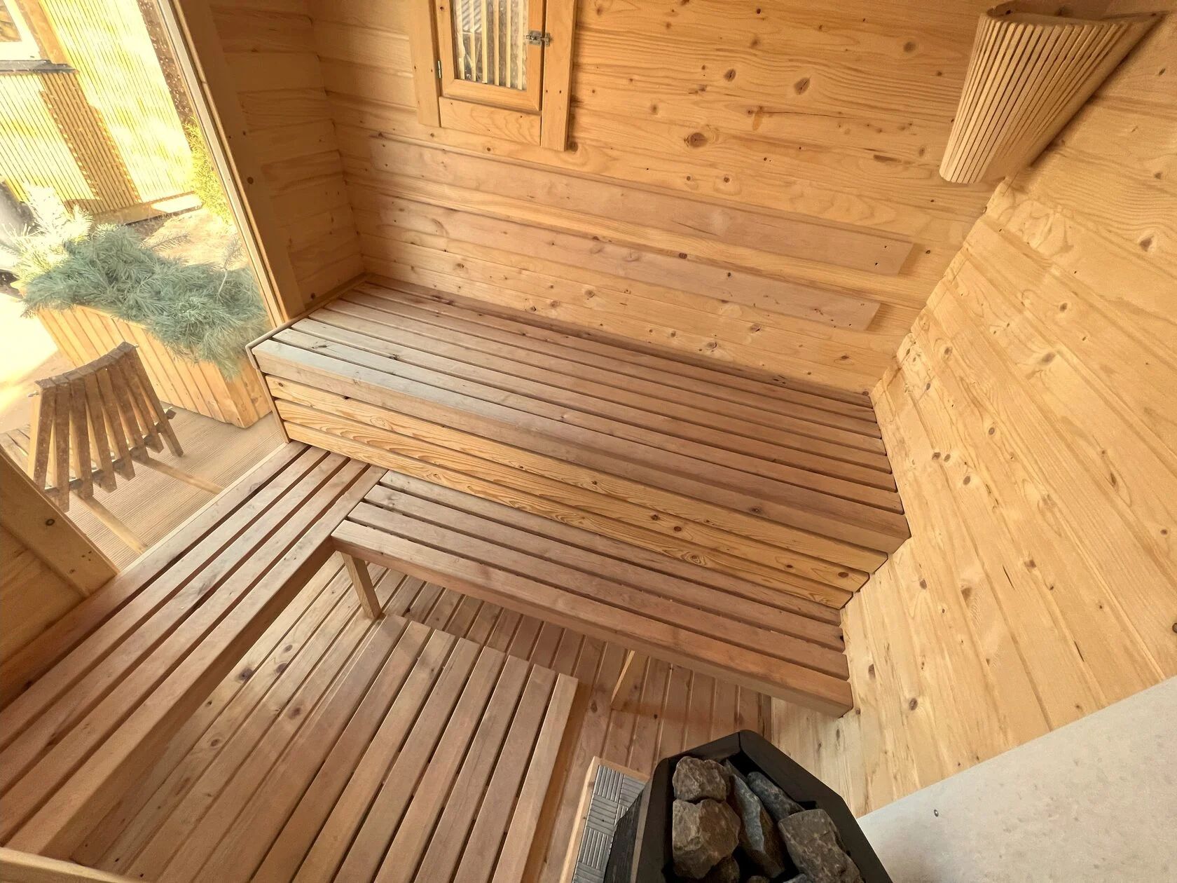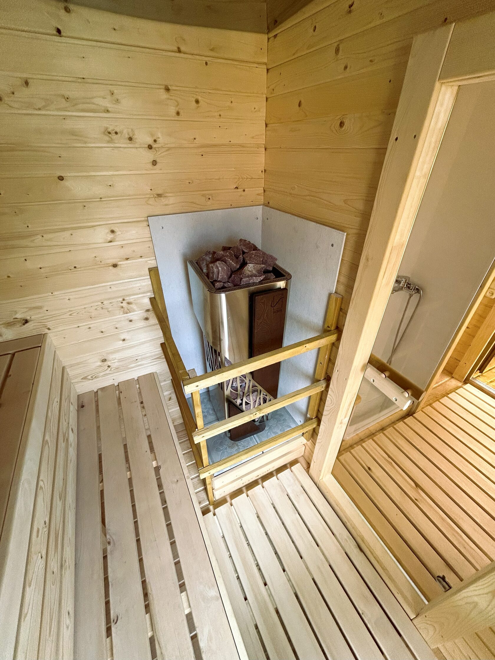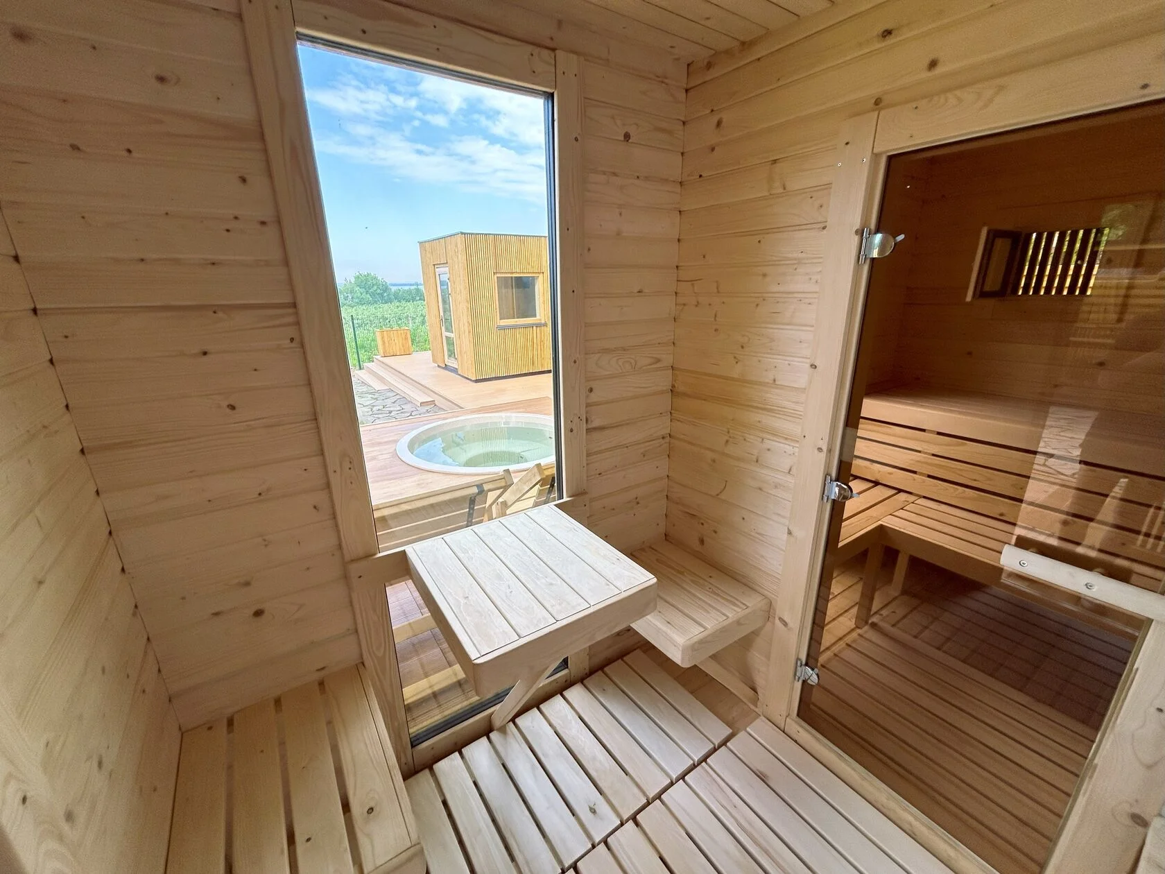 - Сауна с панорамными окнами – вид на Минское море во время парения