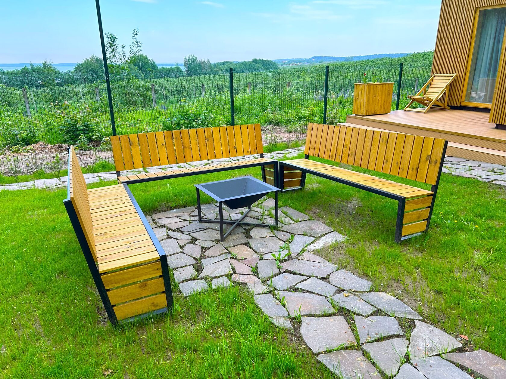 - Уличный очаг – создаёт тёплую атмосферу для вечерних посиделок