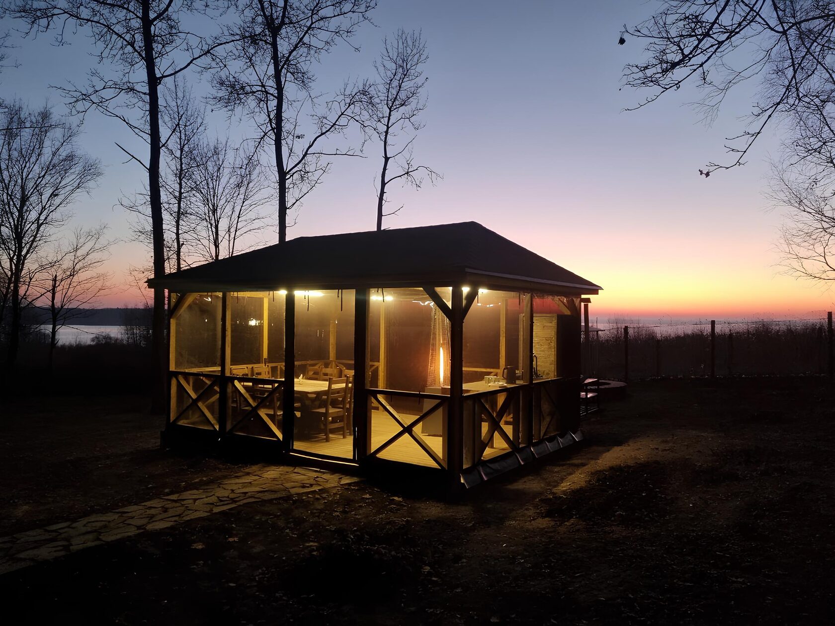 В вашем распоряжении – полностью оборудованная крытая отапливаемая беседка и прилегающая зона: