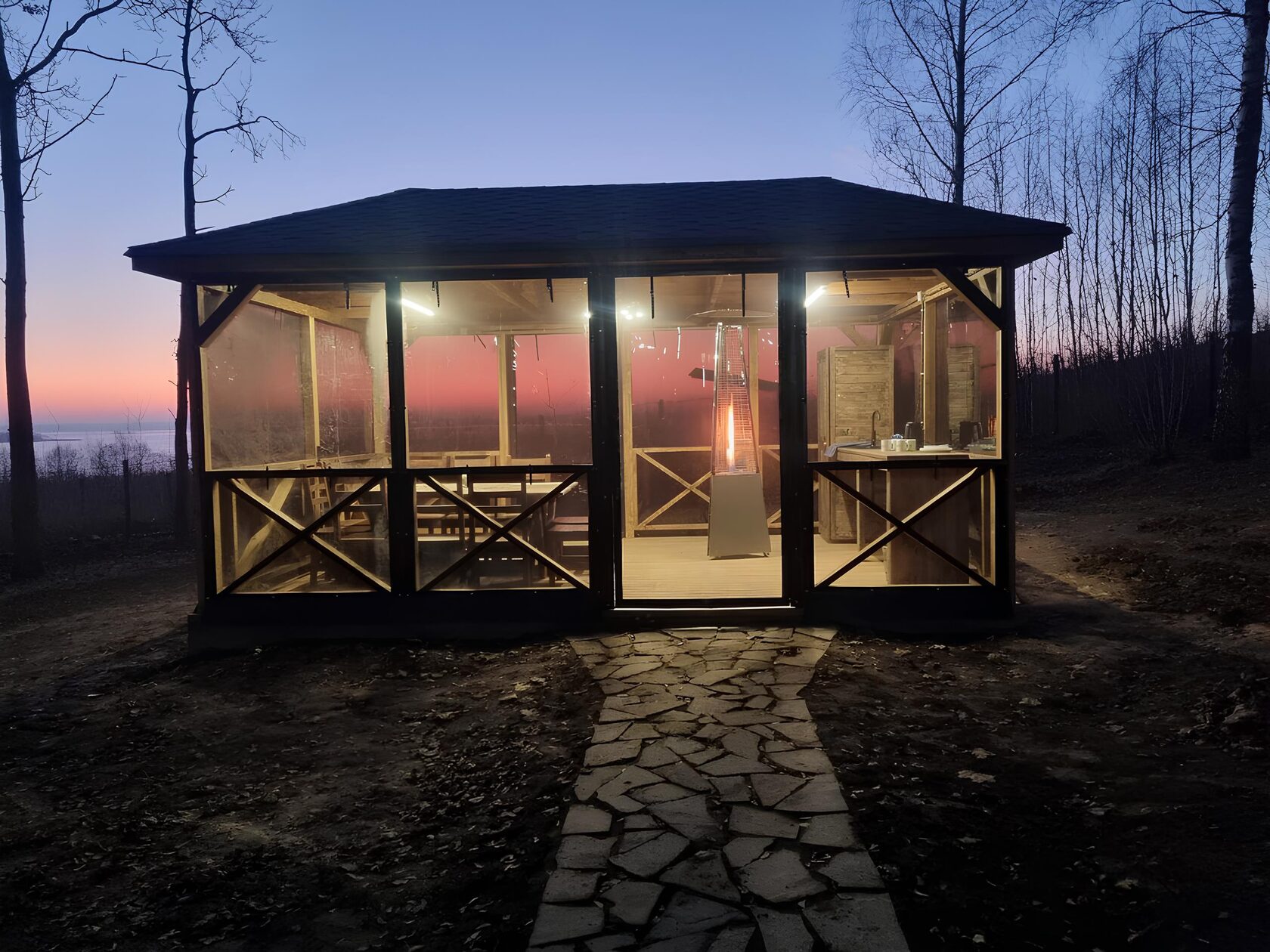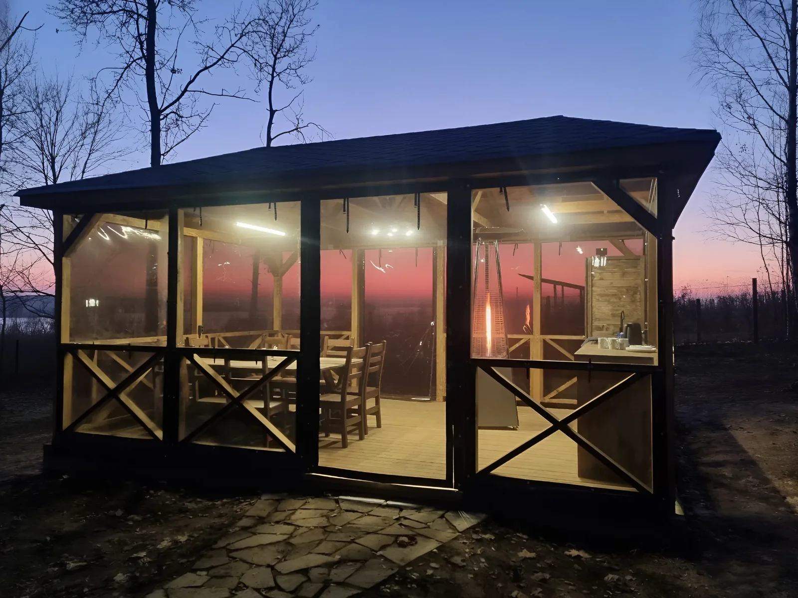 - Крытая отапливаемая беседка – комфортная температура круглый год