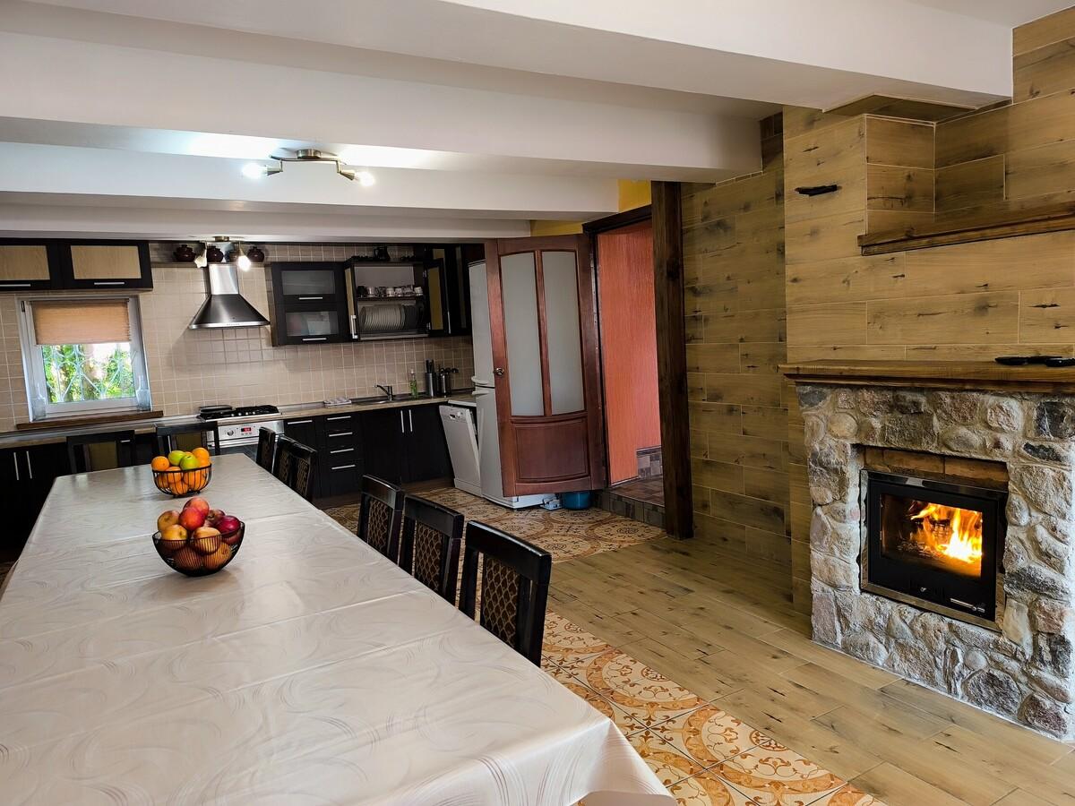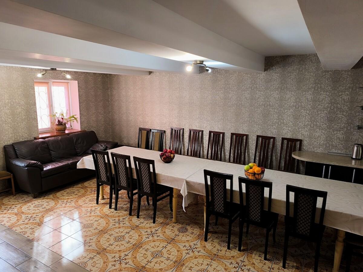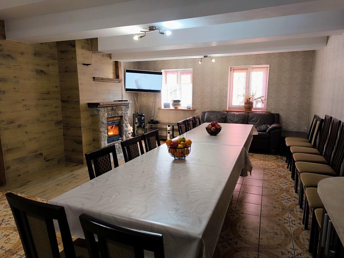 • Просторный банкетный зал на первом этаже с большим столом на 20 человек.