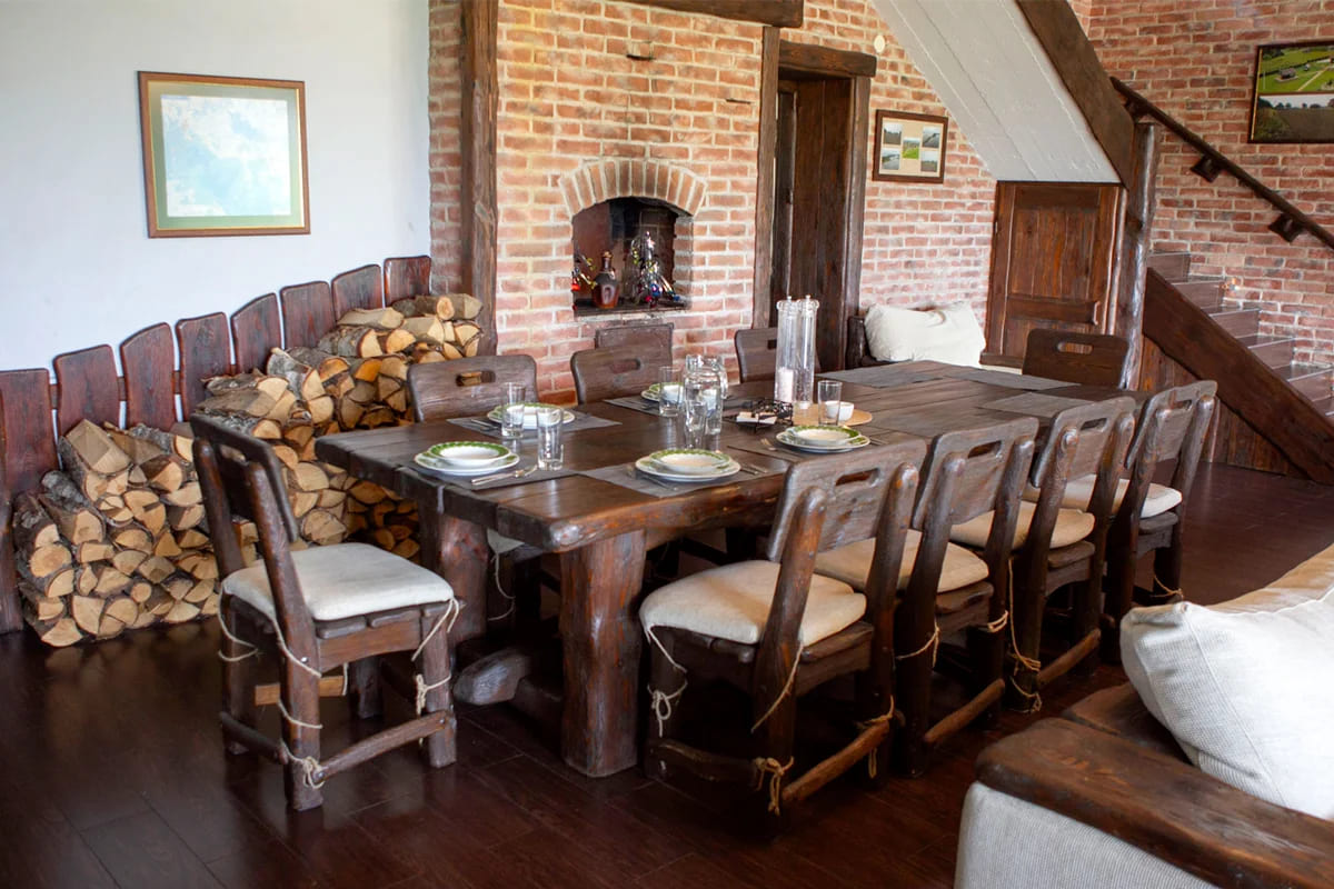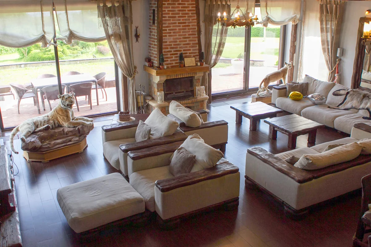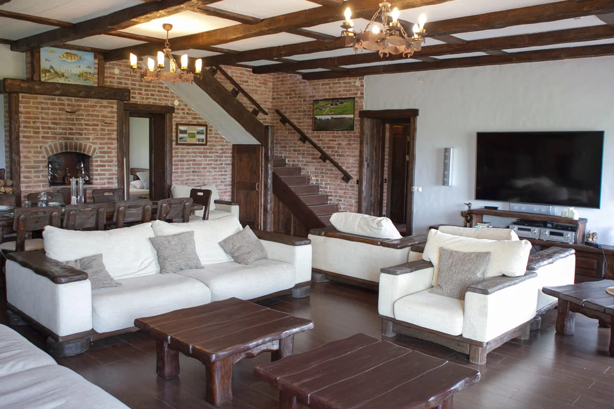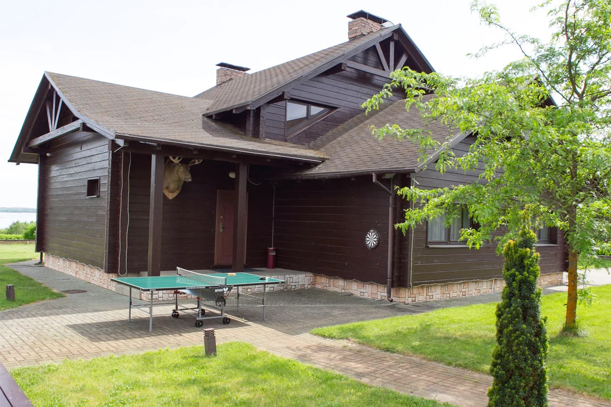 VILLA MYADEL — это загородный комплекс премиум-класса, расположенный на первой береговой линии озера Мядель. Усадьба выполнена в австрийском стиле шале с обилием деревянных элементов и массивной мебелью из натурального дерева. Интерьер напоминает охотничью усадьбу с трофеями, располагающую к безмятежному отдыху у камина. Большая территория с ландшафтным дизайном и панорамными видами на 360° – идеальное место для семейного отдыха, корпоратива или романтического уикенда.