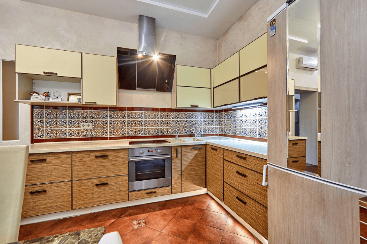 - Полностью оборудованная кухня: плита, духовой шкаф, СВЧ-печь, посудомоечная машина, стиральная машина, холодильник, утюг и всё необходимое