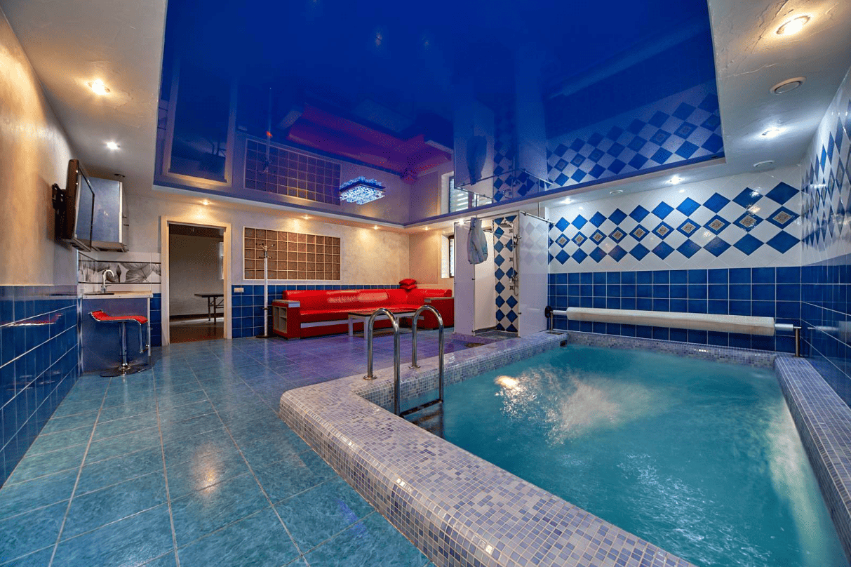 - Бассейн с фильтрацией и гейзерной пушкой