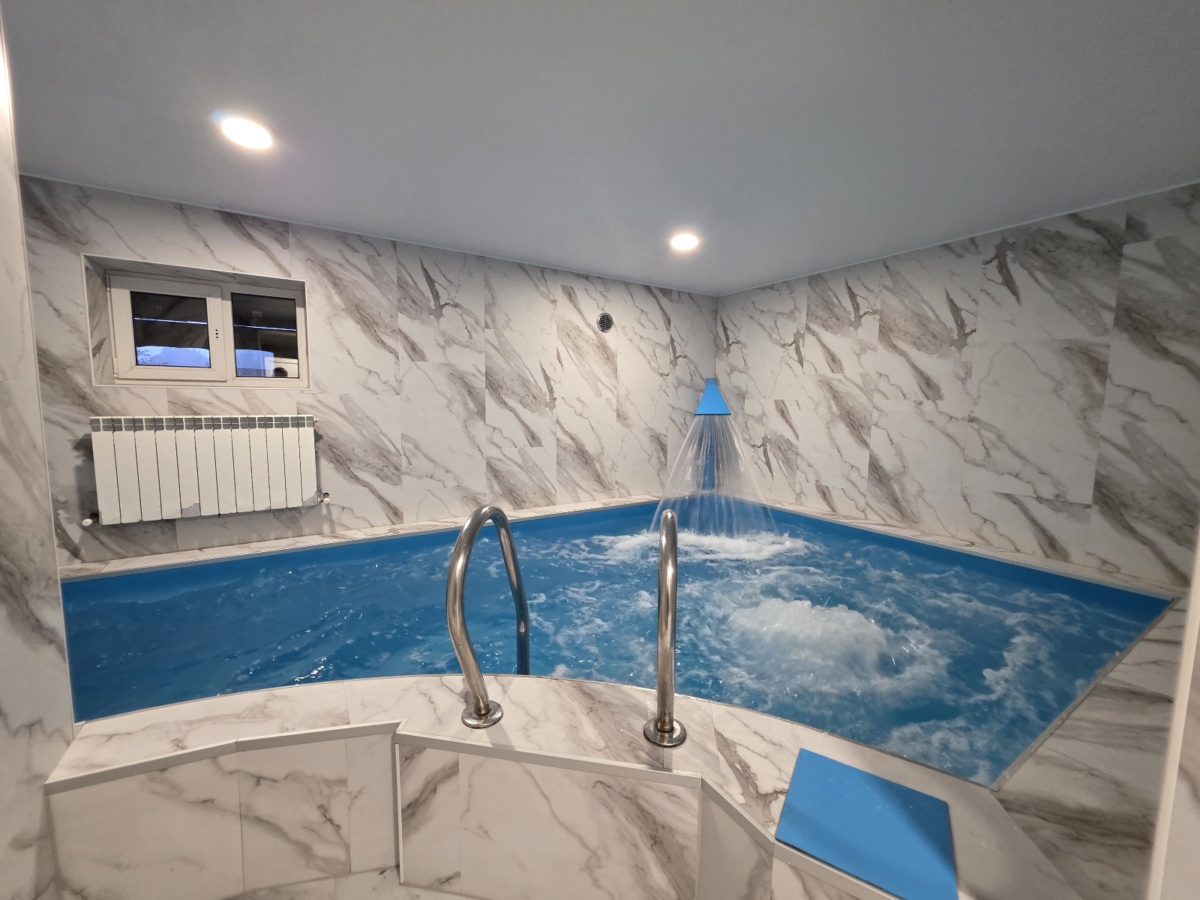 - Бассейн с гейзером и водопадом (без подогрева, возможен подогрев по запросу)